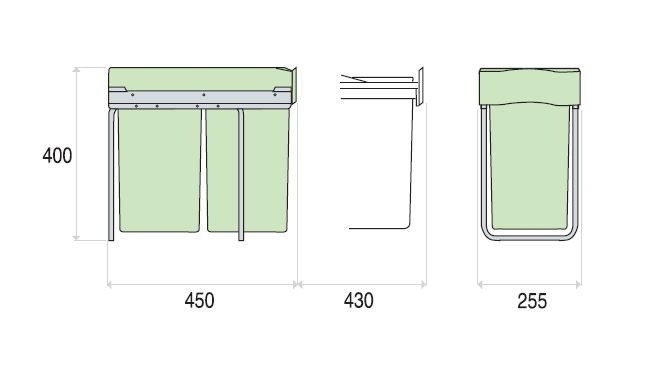 - B-255 x T-450 x H-400 mm