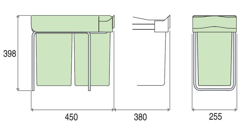 - B-255 x T-450 x H-398 mm