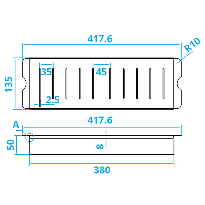 Abmessungen: 417,6 / 380 x 135 x 50mm