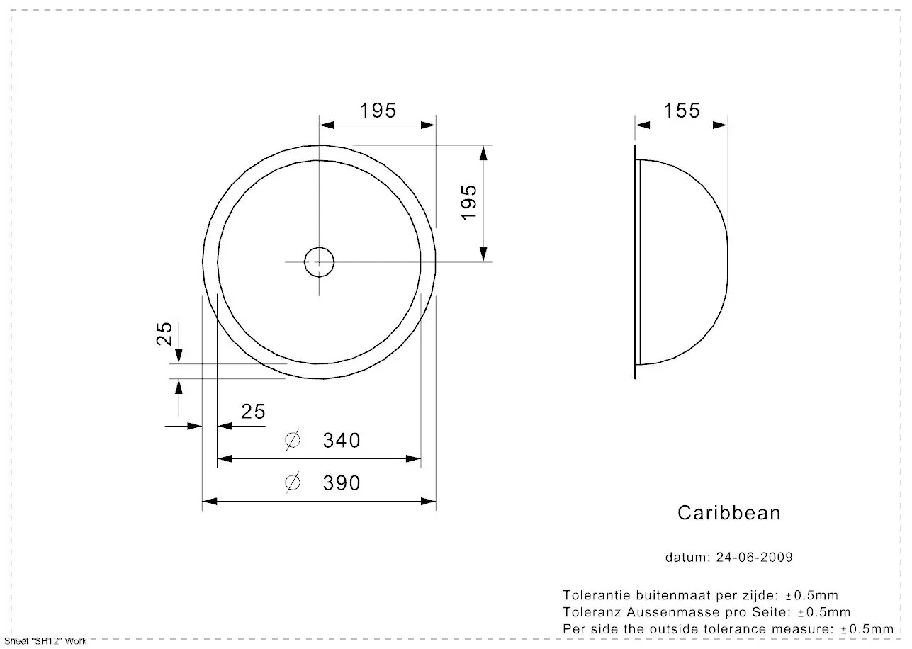 Beckenmaß: Ø340 x 155 mm