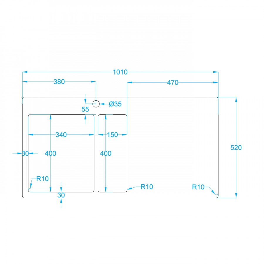 Caressi Edelstahl Spüle 1000x520mm,1,5 Becken links