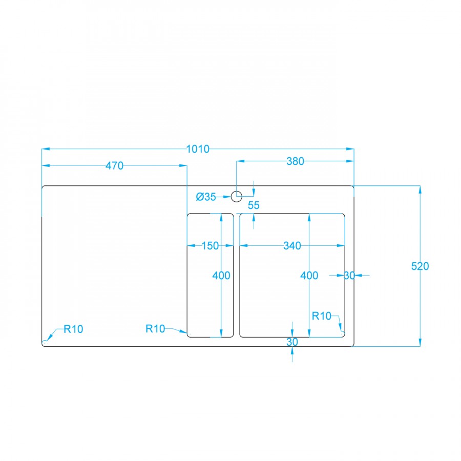 Caressi Edelstahl Spüle 1000x520mm,1,5 Becken rechts