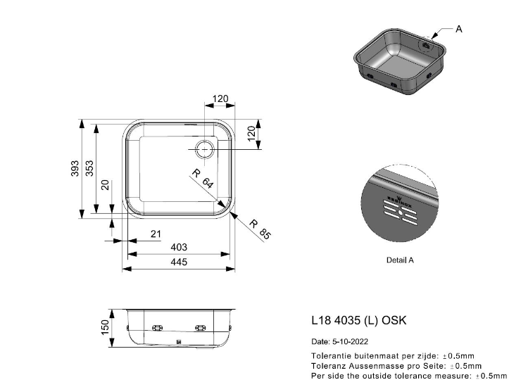 Edelstahl Küchenspüle L18 4035 OSK