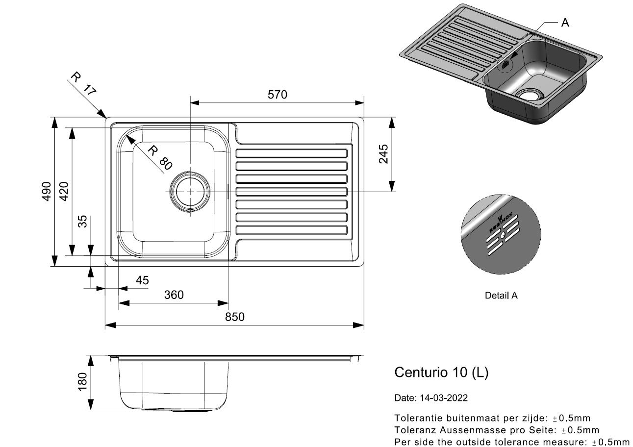 Edelstahl Spülbecken CENTURIO L10 ohne Bohrungen
