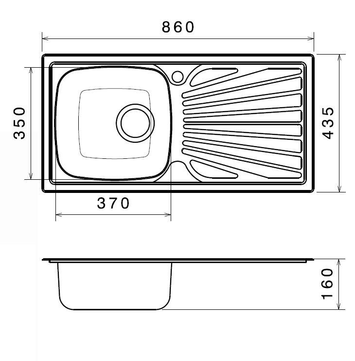 Edelstahl Spüle Napoli mit Abtropffläche poliert, reversibel