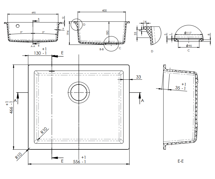 Jupiter 600 ist eine Küchenspüle aus Verbundwerkstoff zum Einbau. Das Design ist praktisch und schlicht. Das Verbundmaterial ist von hoher Qualität, wodurch die Spüle sehr langlebig und leicht zu reinigen ist.Das Waschbecken wird mit einer schwarzen Ablaufgarnitur geliefert.