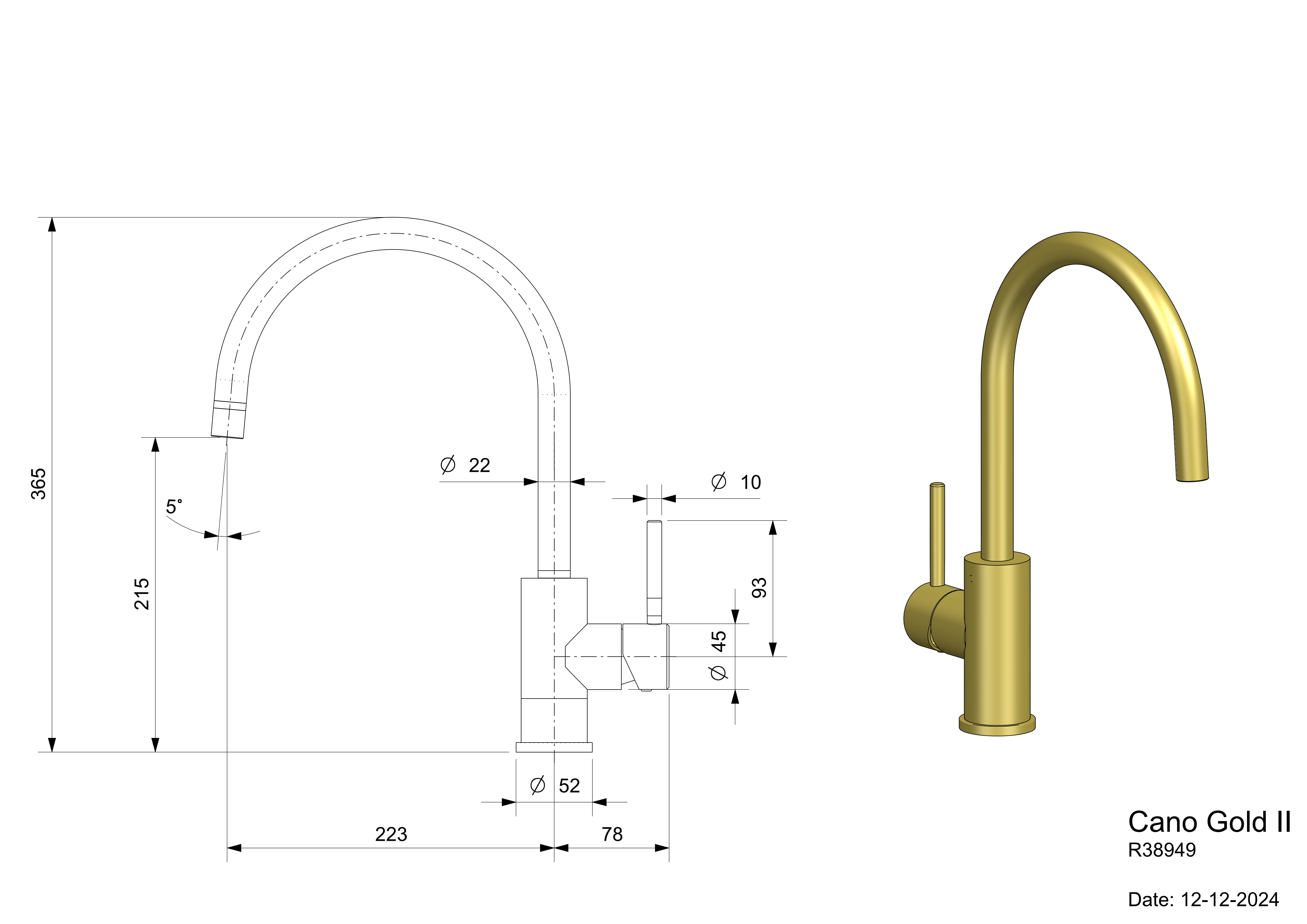Reginox Cano Gold II Einhandmischer Spülbecken Armatur Schwenkauslauf Edelstahl