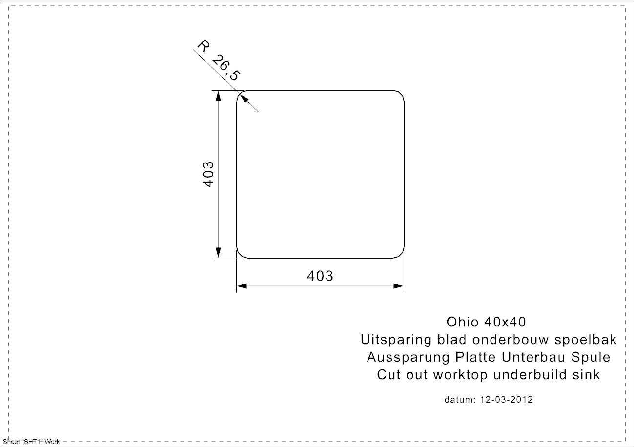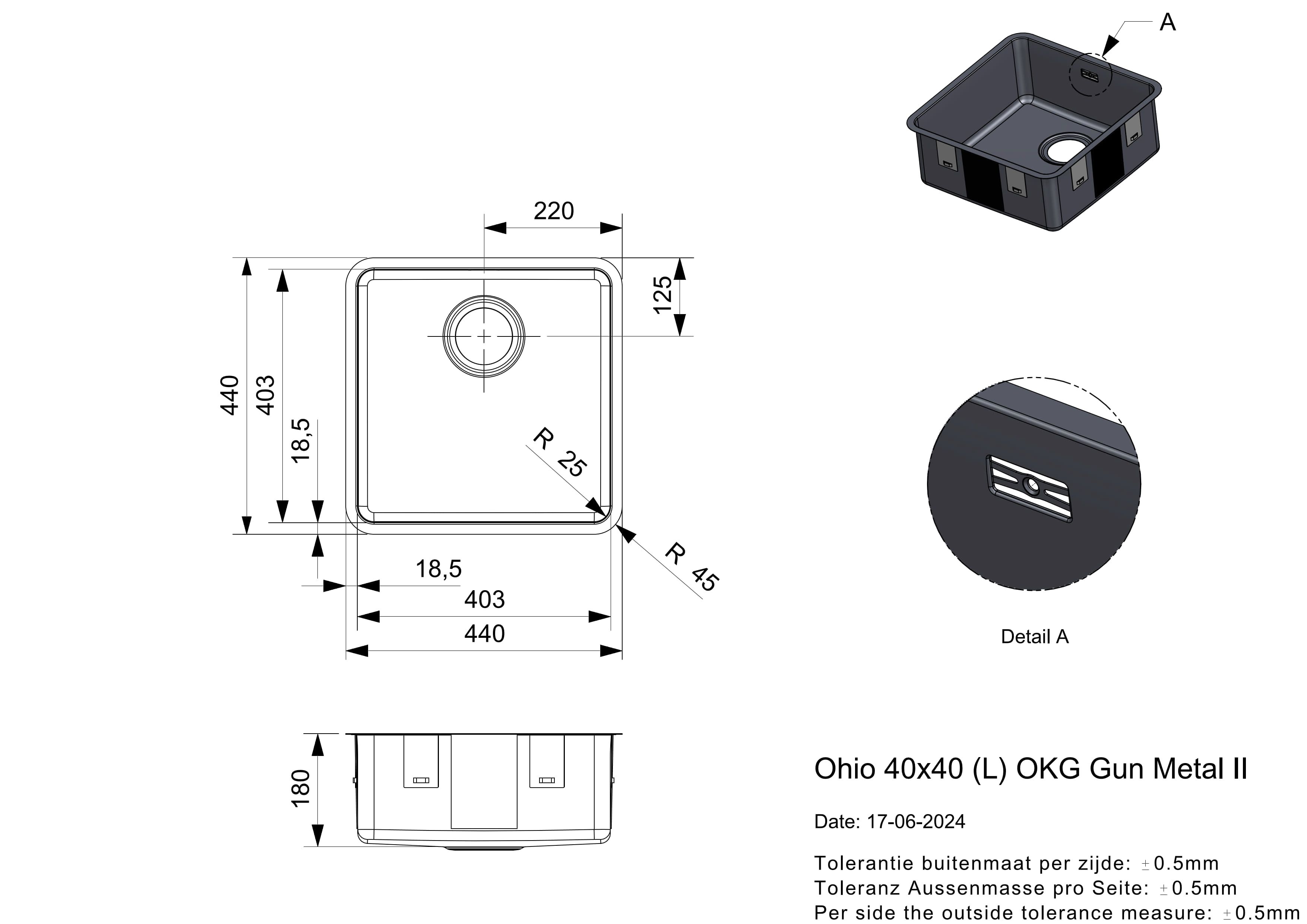 Beckenmaß: 403 x 403 x 180 mm