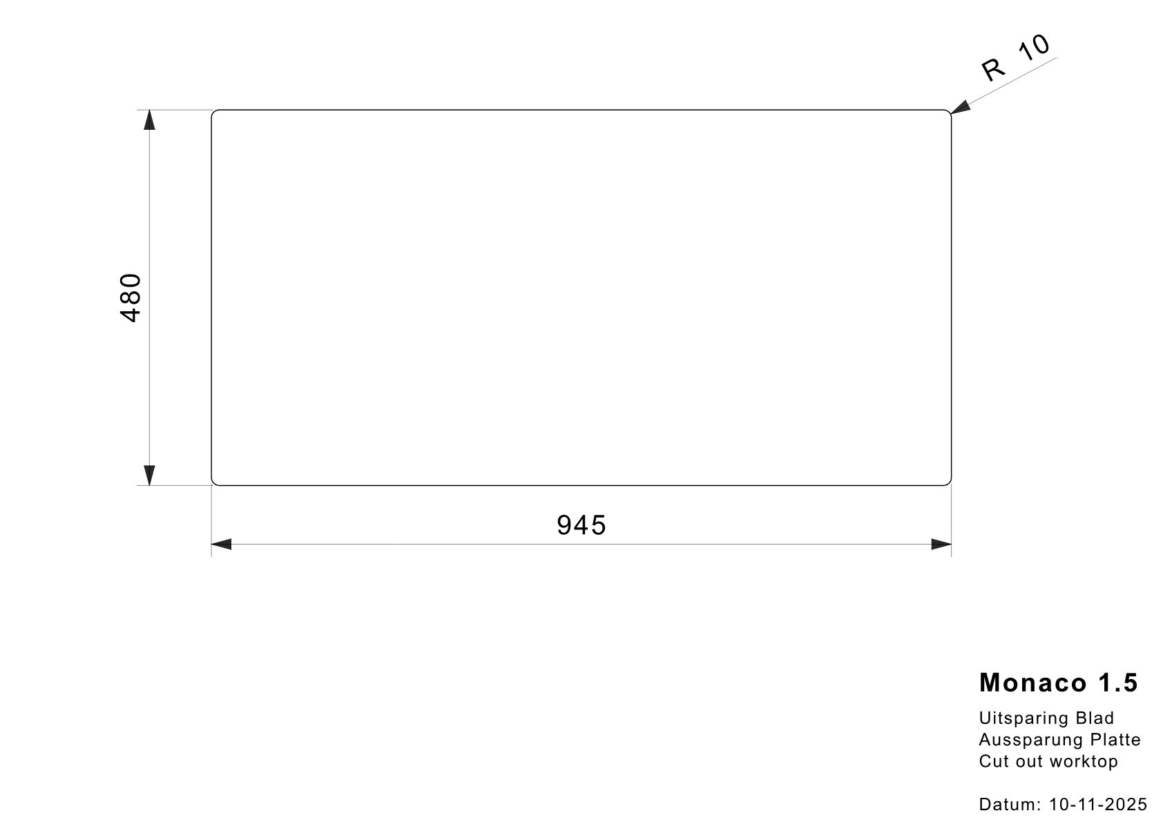 Abmessungen: 965 x 500 x 165 mm