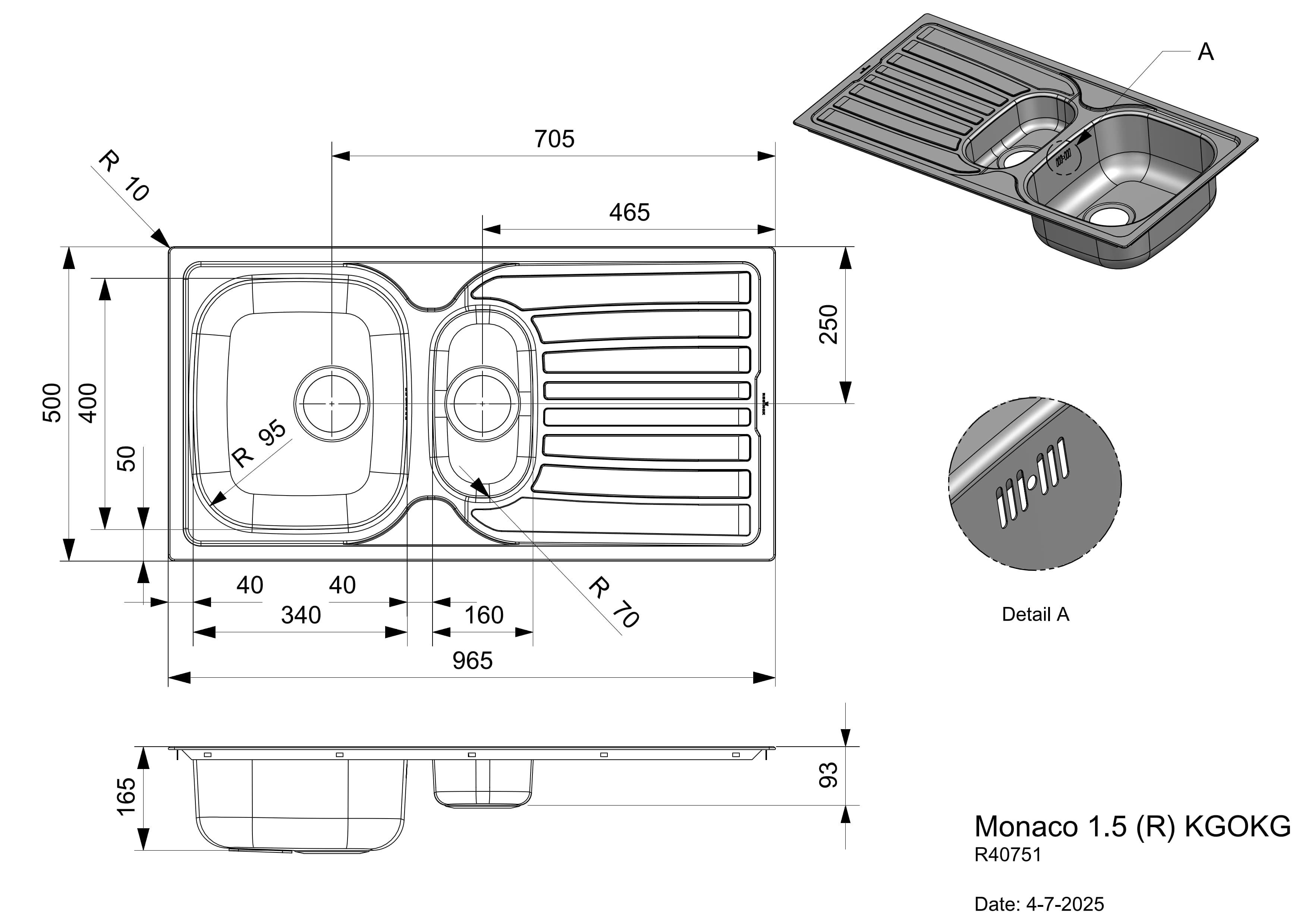 Reginox Edelstahlspüle mit 1,5 Becken Monaco 1,5 (R) KGOKG