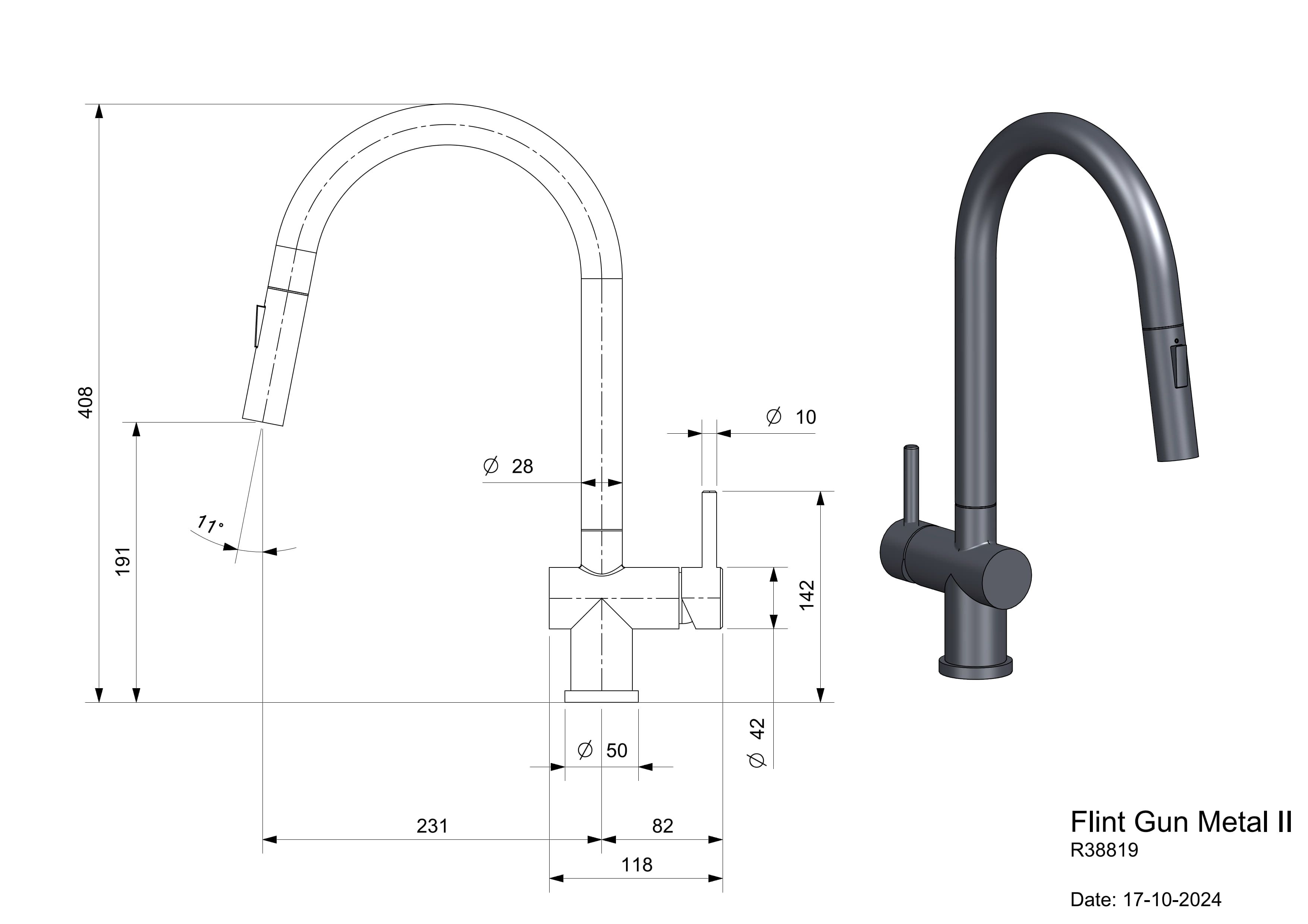 Reginox Flint Gun Metal II Einhandmischer Spülbecken Armatur Edelstahl mit ausziehbaren Auslauf