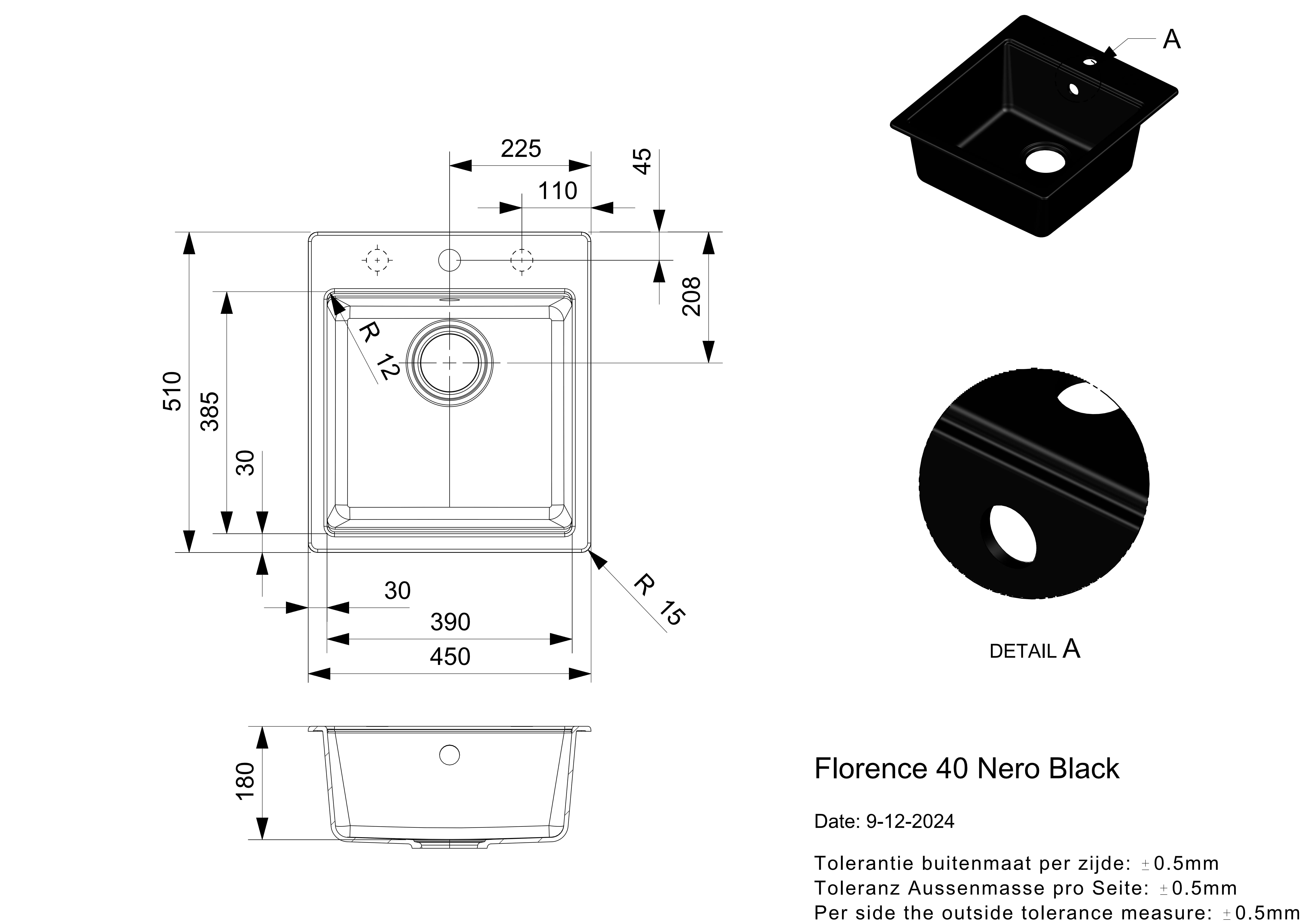 Beckenmaß: 390 x 385 x 180 mm