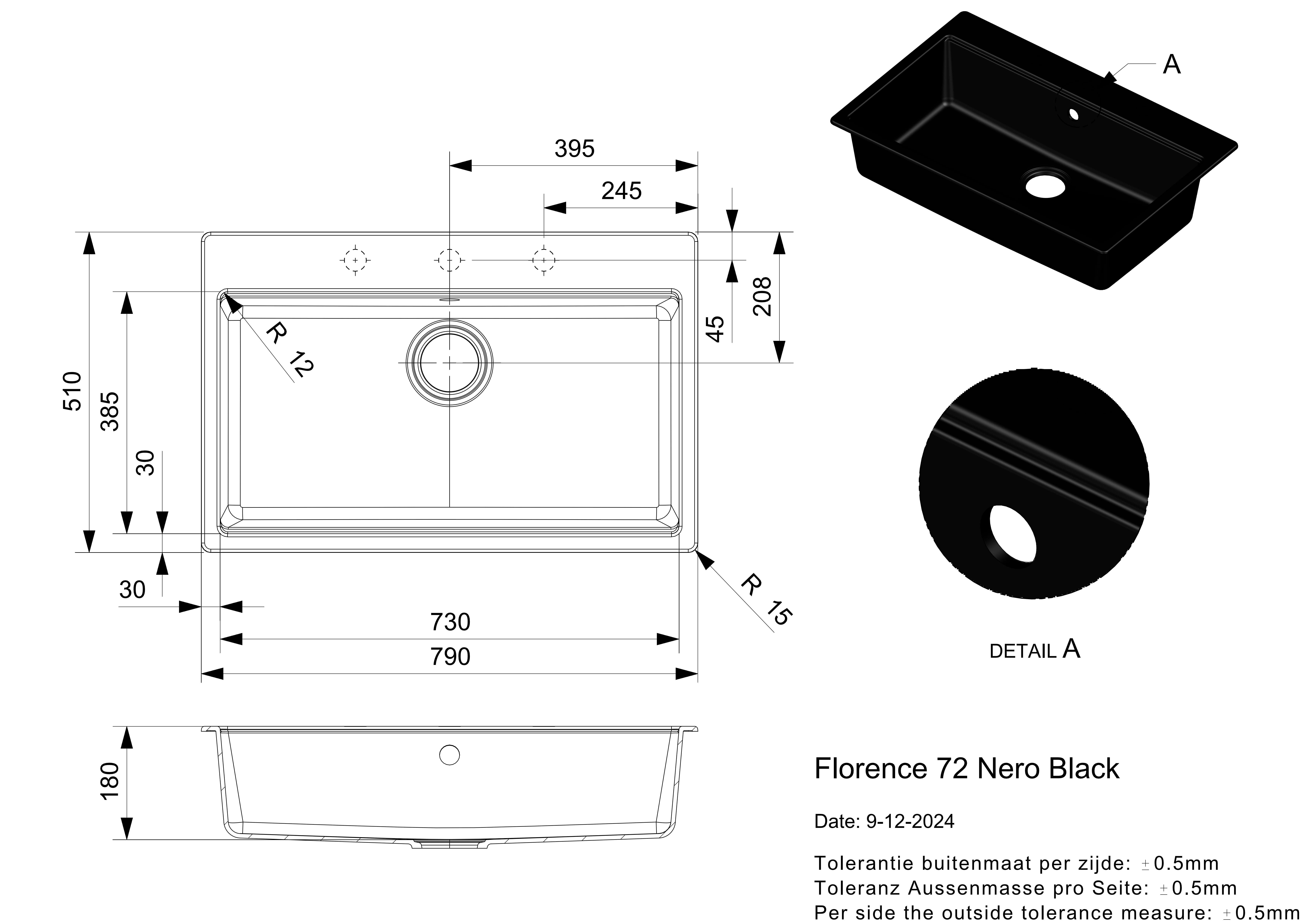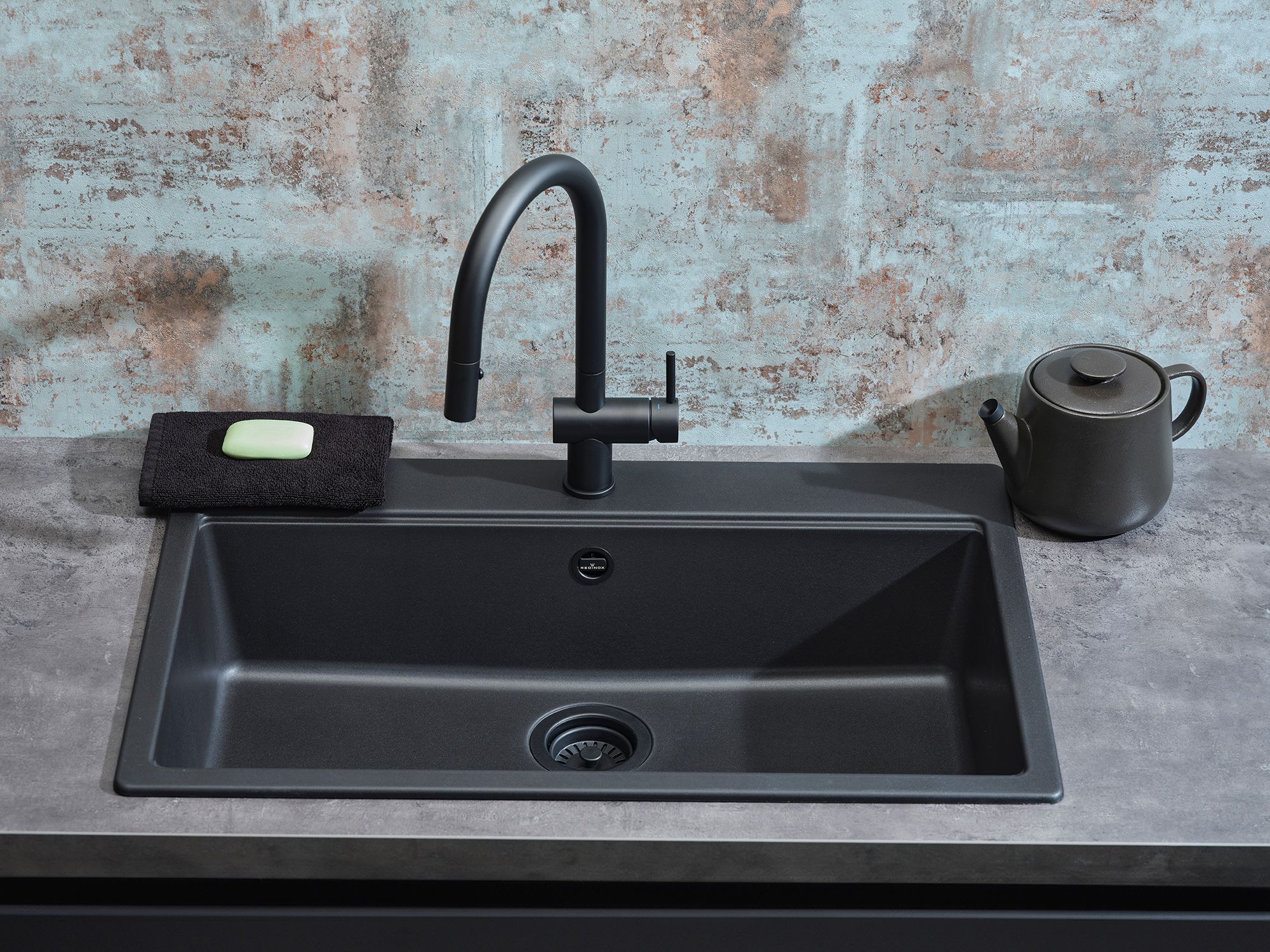 Reginox FLORENCE 72 nero-black Granit Spülbecken mit Hahnloch schwarz-matt