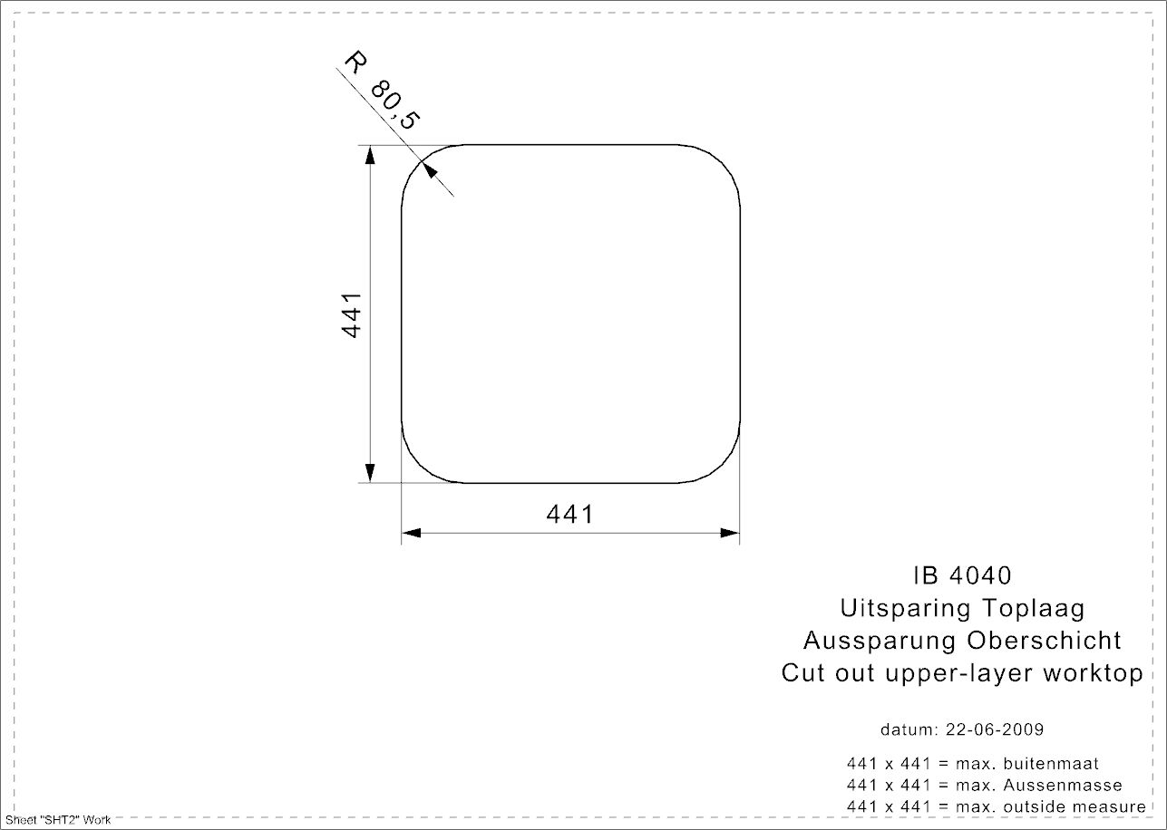 Außenmaß: 440 × 440 mm
