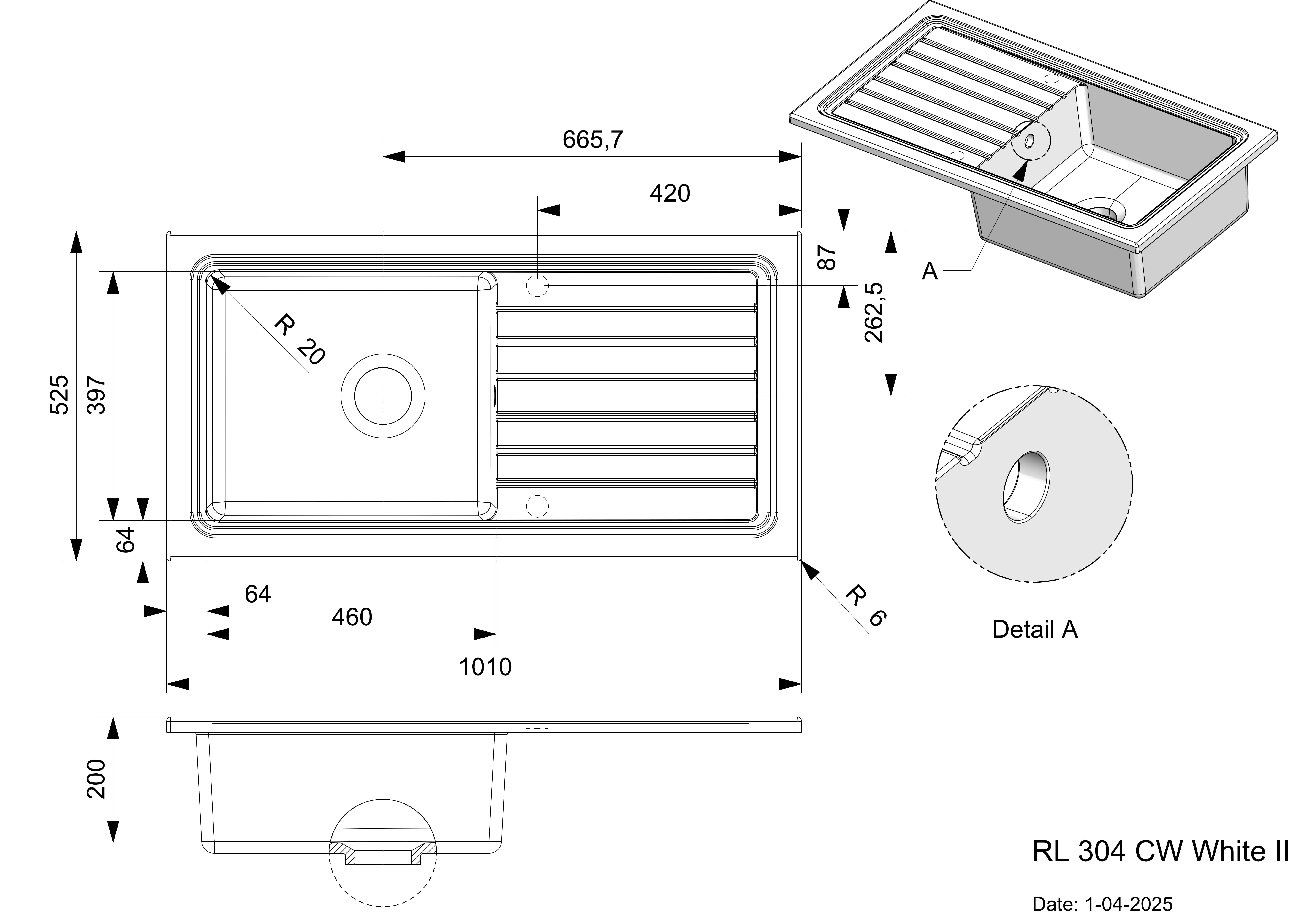 Reginox Keramik Spüle RL304 CW II 1 Becken weiß