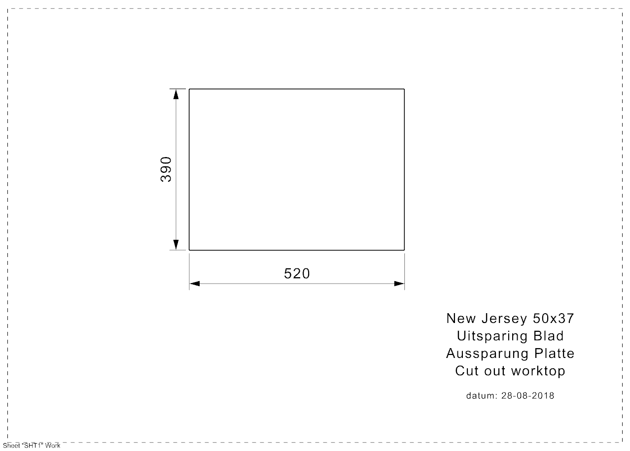Ausschnitt Einbau von oben: B 520mm x T 390mm