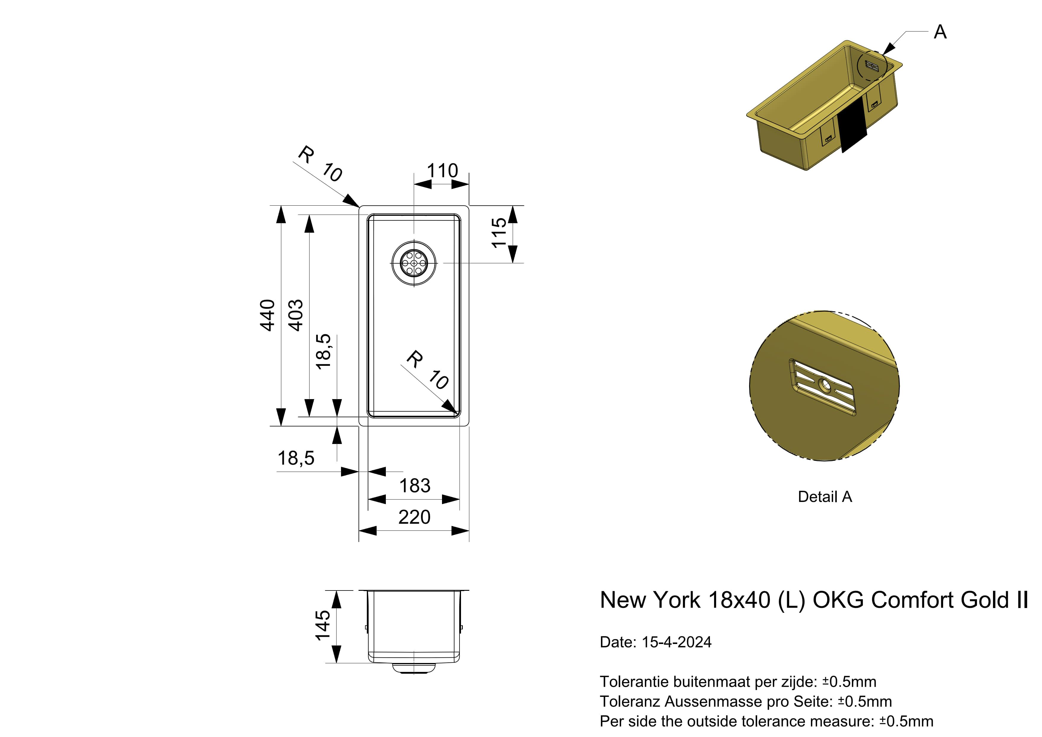 Reginox New York 18X40 Gold II Edelstahl Spülbecken