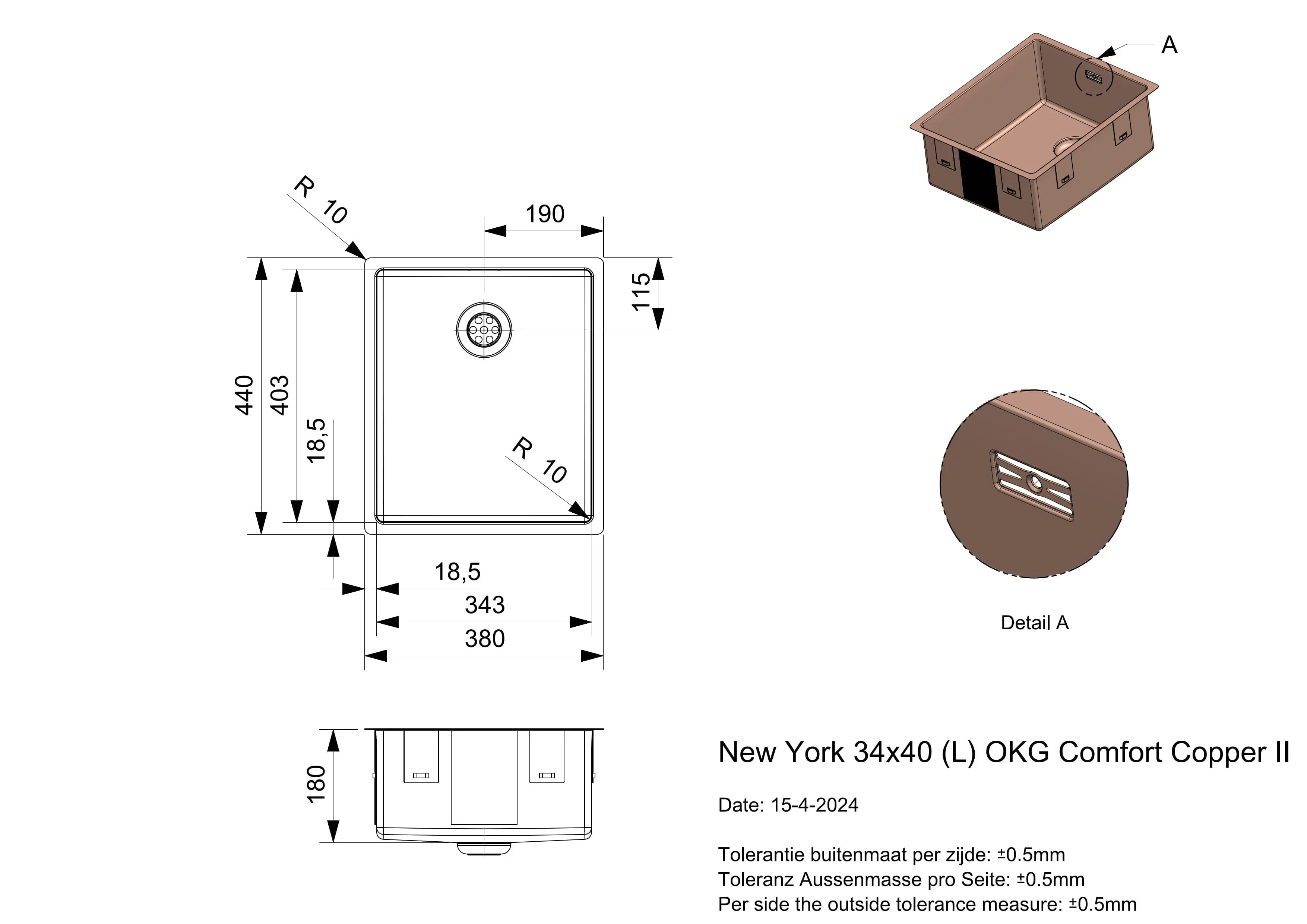 Reginox New York 34X40 COPPER II Integrated Edelstahl Spülbecken