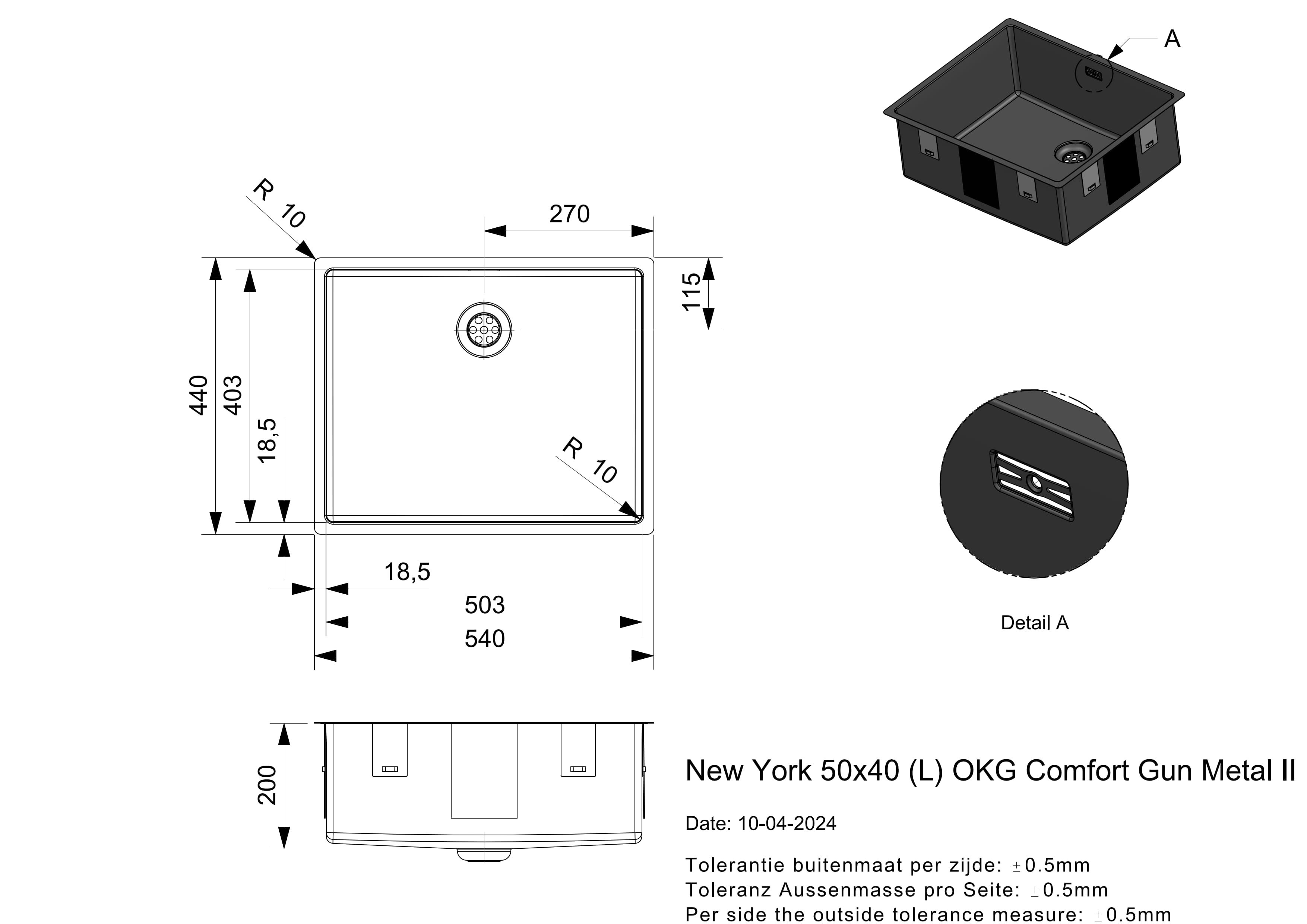 Reginox New York 50X40 GUN METAL II Integrated Edelstahl Spülbecken