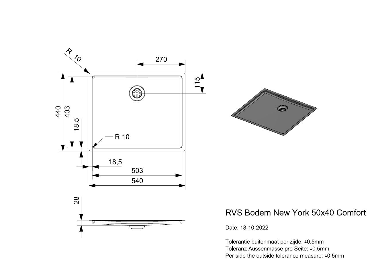 Reginox Edelstahl Beckenboden NEW YORK 50x40