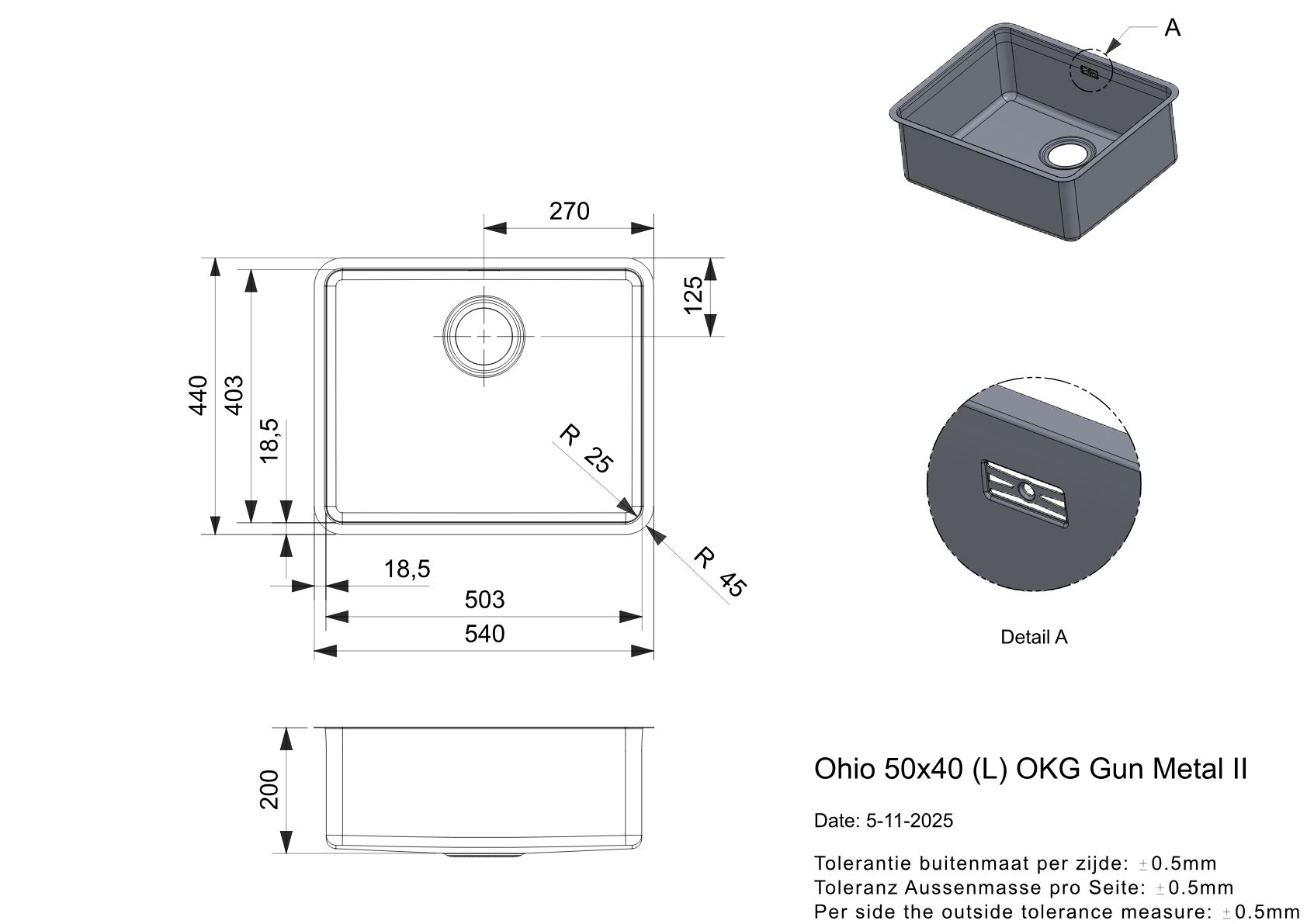 Reginox Edelstahl Einbauspüle OHIO 50x40 Gun-Metal II