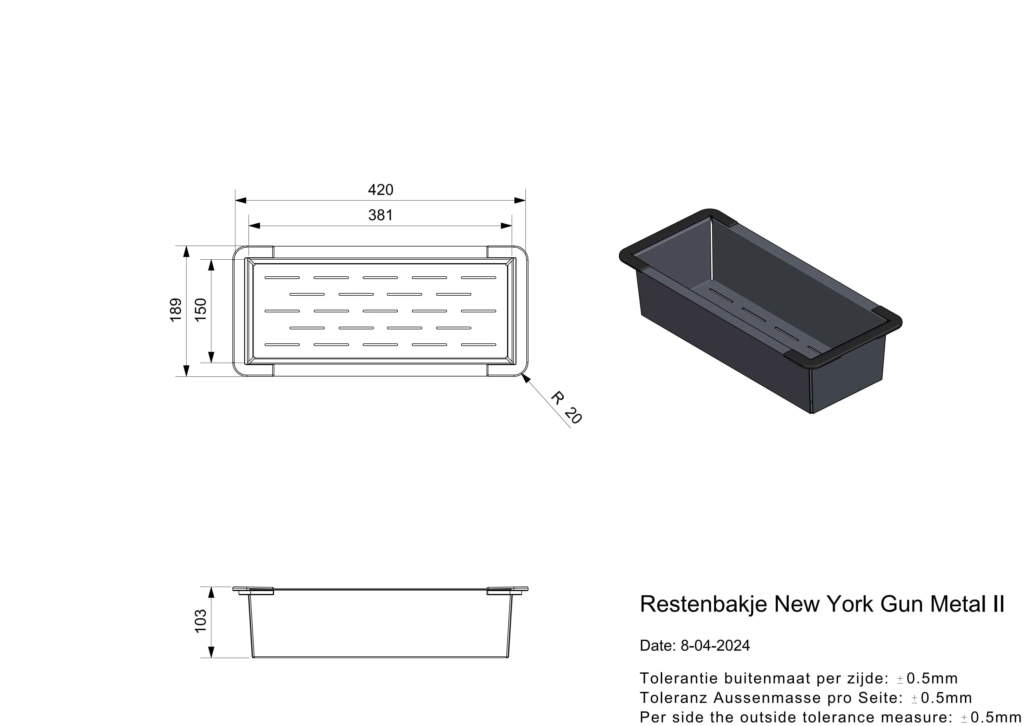 Reginox Restebeckeneinsatz Colander Gun Metal II Edelstahl