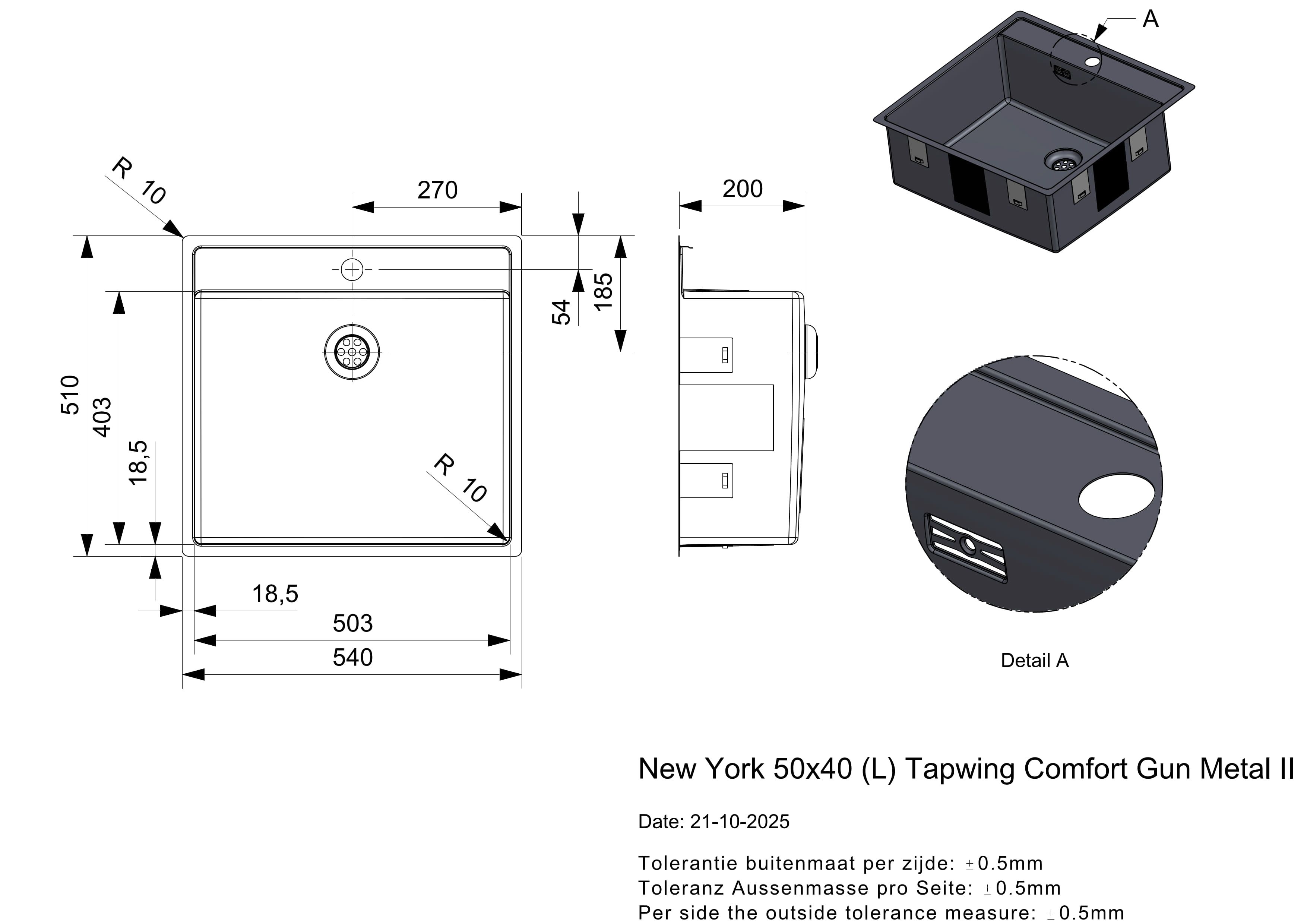 Außenabmessungen: 540 x 510 * 200 mm