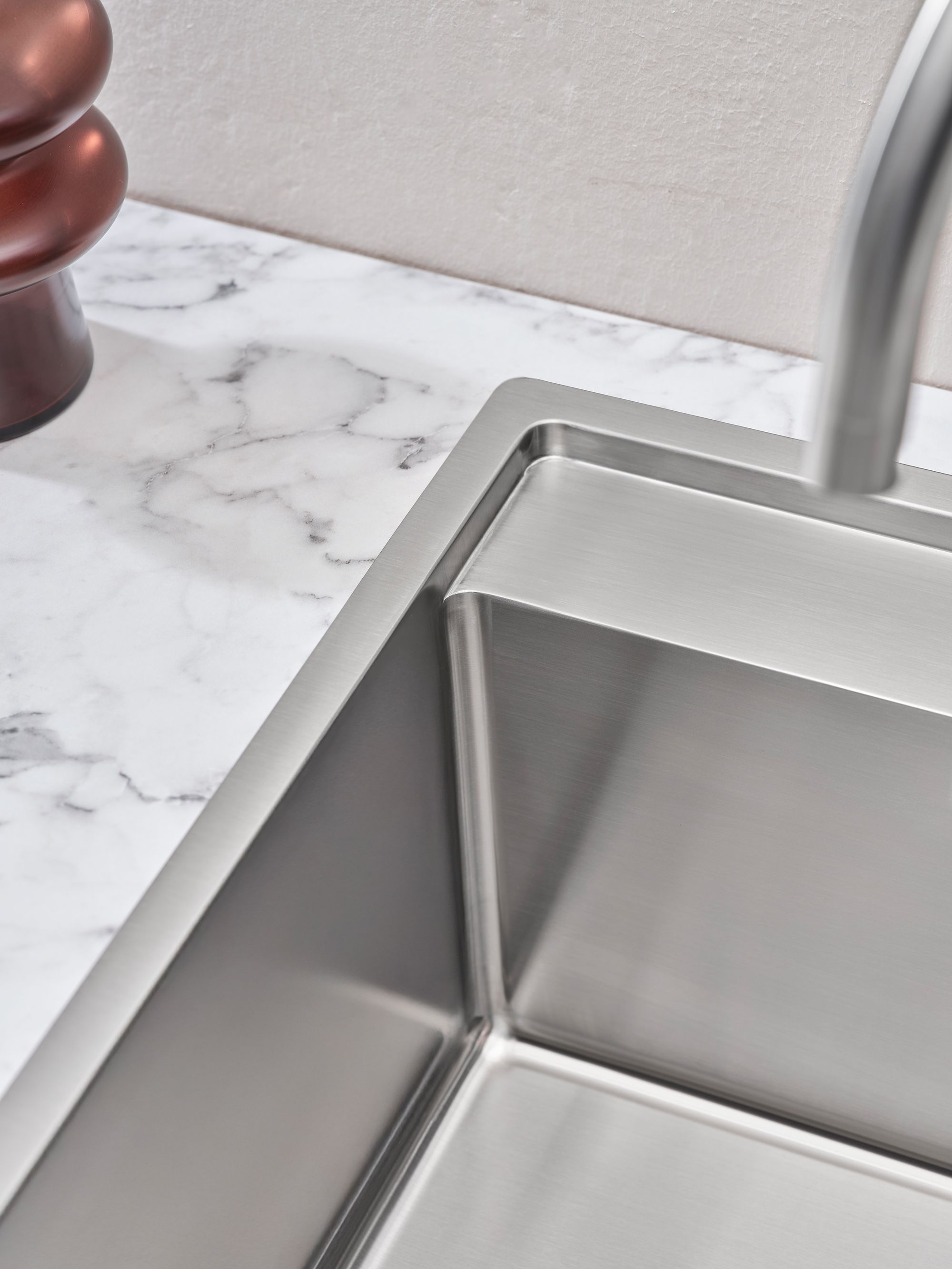 Eine flächenbündige Spüle wird bündig in die Arbeitsfläche integriert, sodass die Kante der flächenbündigen Spüle eine Einheit mit der Arbeitsfläche darstellt. Die Arbeitsfläche und die Kante der Spüleinheit passen nahtlos zusammen; so kann die Arbeitsfläche einfach gereinigt werden. Die Oberseite der Spüleinheit schließt bündig an die Oberseite der Arbeitsfläche an; dies ist nicht nur optisch schön, sondern bietet auch hygienische Vorteile. Flächenbündige Spüle werden in der Regel unter Verwendung von HPL-Multiplex, Granit, Holz oder Kompositmaterialien eingebaut. Reginox verfügt über eine breite Auswahl an flächenbündigen Spüleinheiten.