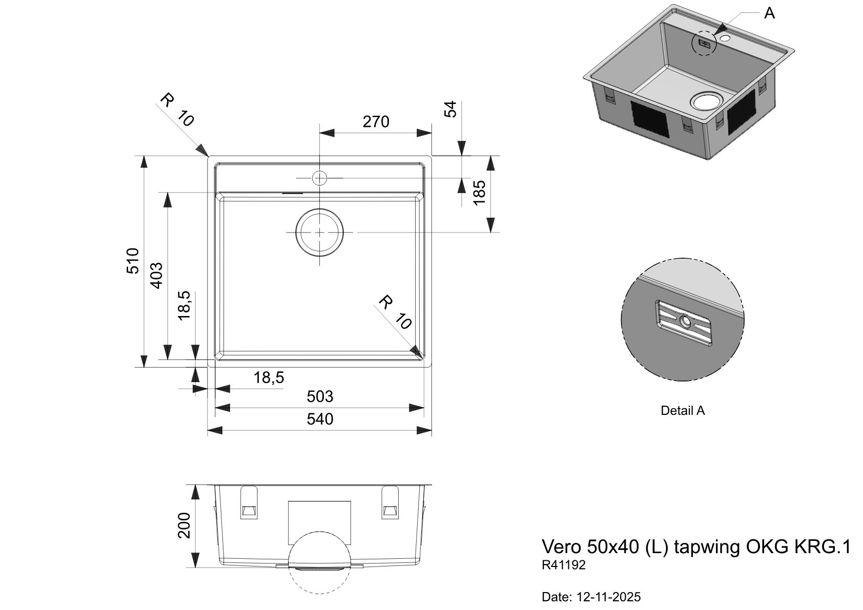 Reginox Edelstahl Einbauspüle VERO 50x40 TAPWING OKG