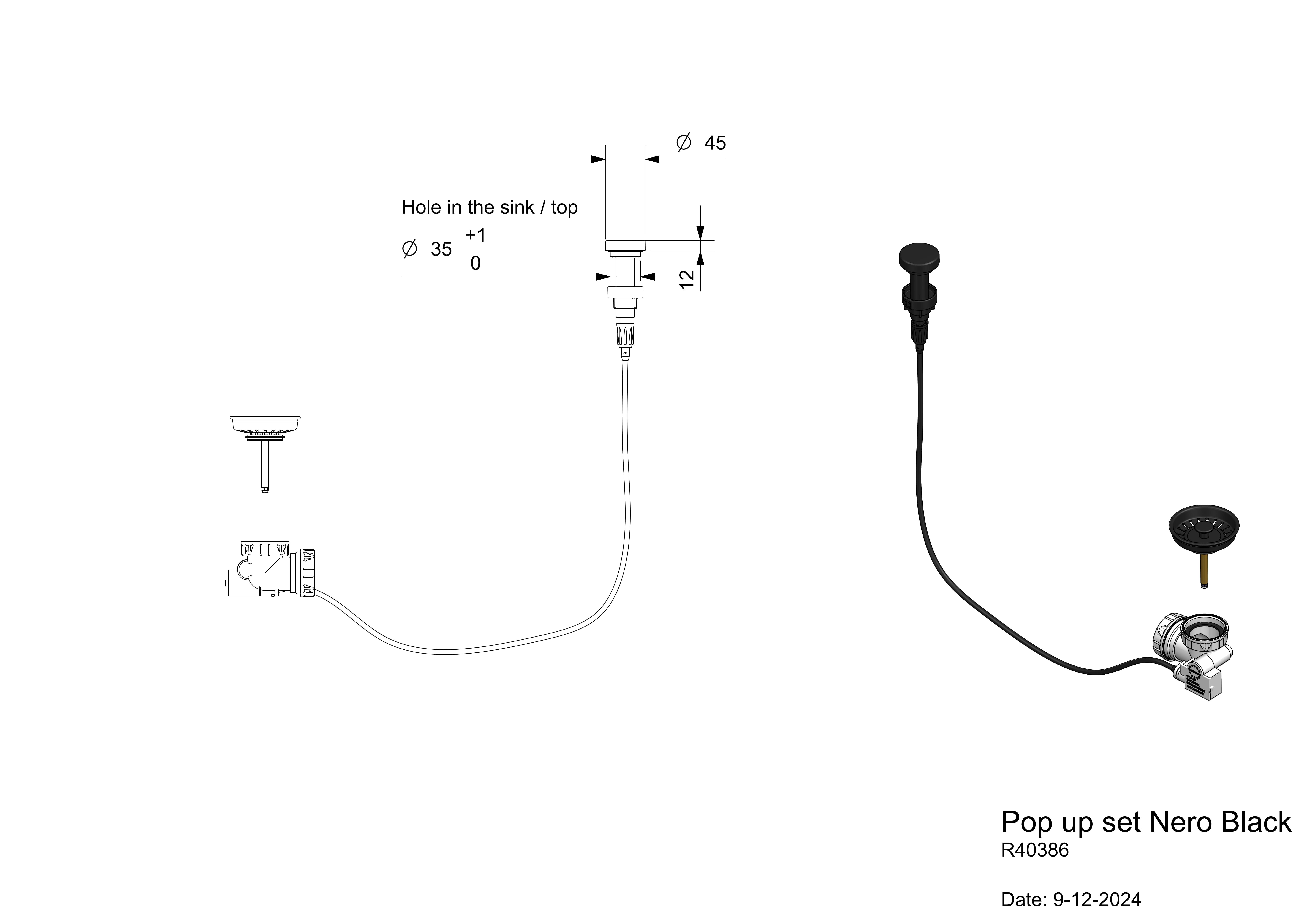 "Schwarze Ablaufgarnitur mit Druckknopf exzenter"