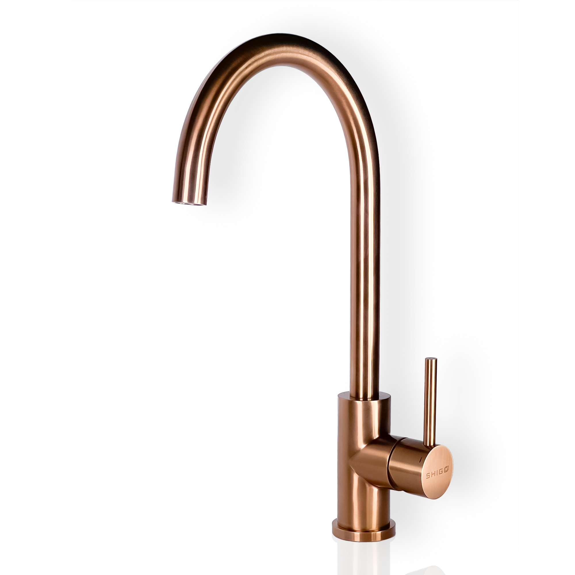 SHIGO Einhebelmischer Rundauslauf, Armatur Edelstahl massiv, kupfer
