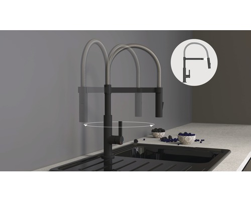 • FLEXIBELE Spiralfeder des Einhebelmischers kann in alle Richtung bewegt werden
