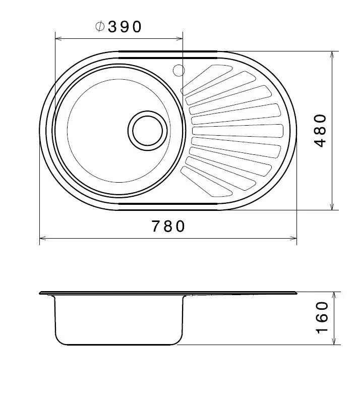 - Spülenmaß 780 x 480 mm