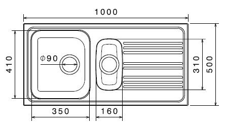 Beckenabmessung: 350 x 410 x 170mm / 160 x 310 x 120mm
