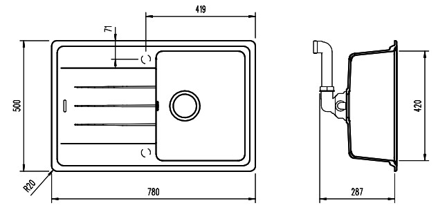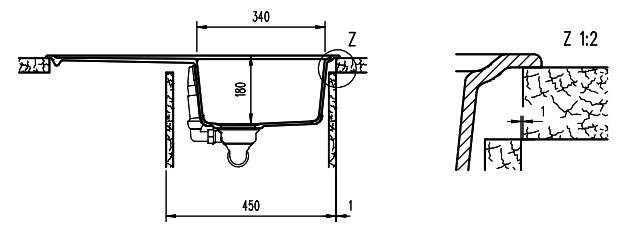 ⚪ Victory Granitspüle S780.40 – graue Granitspüle 780×500 mm