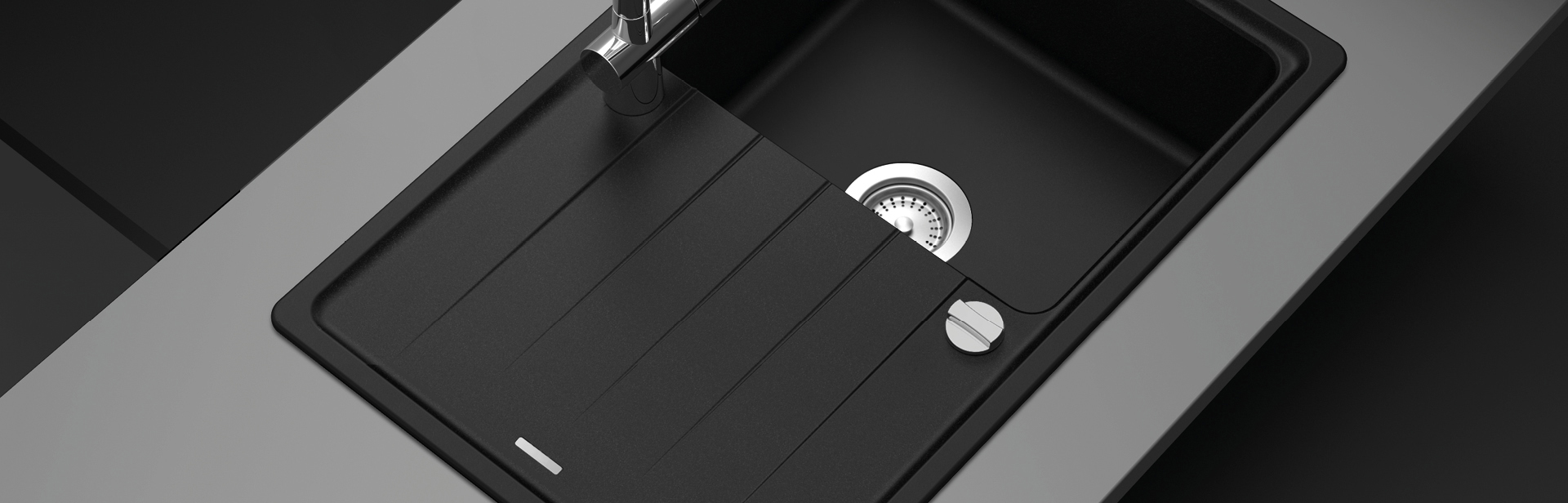 Jetzt Victory Granitspüle S780.10 Deep Black bestellen – hochwertige schwarze Granitspüle 780×500 mm, Made in Germany!