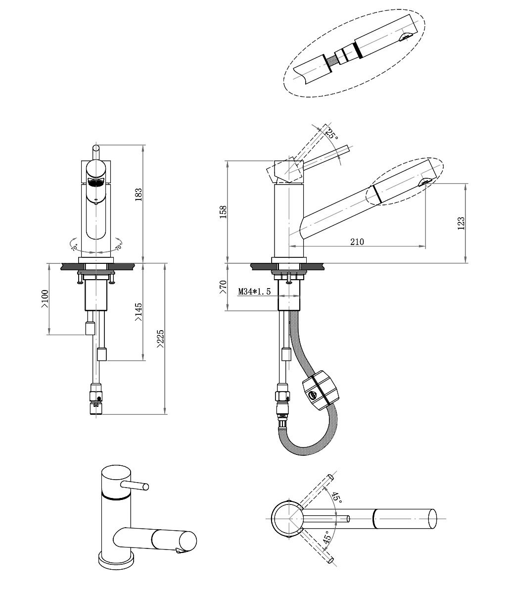 | Auslaufarten: | Ausziehauslauf, Schlauchbrause, Schwenkauslauf, mit Auszugsbrause |