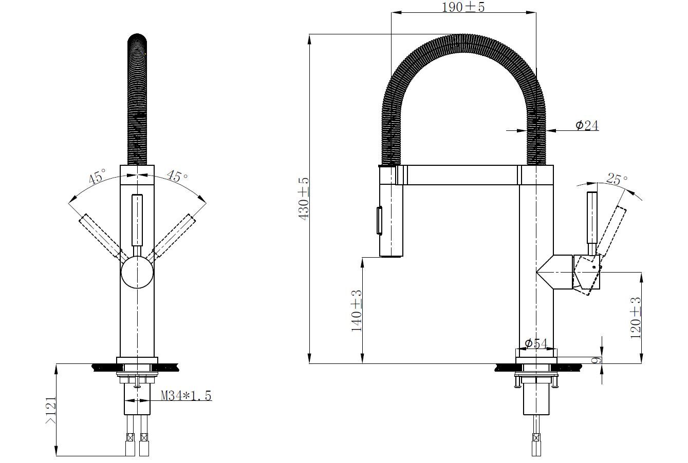 ideal für freistehende Spülen und Kochinseln oder für Spülen unter hoch hängenden Hängeschränken (mit mind. 500-600mm Abstand zwischen Schrank und Spüle).
